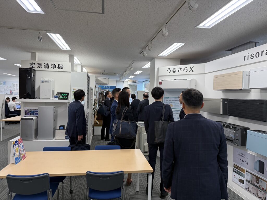 この後、事務所内2階にあるダイキン様のショールームで、新製品や環境対応製品製品を見学。2年前にも見学させて頂きましたが、その時からの製品の変化などについても会員企業の皆さま興味深く見学されておられました。