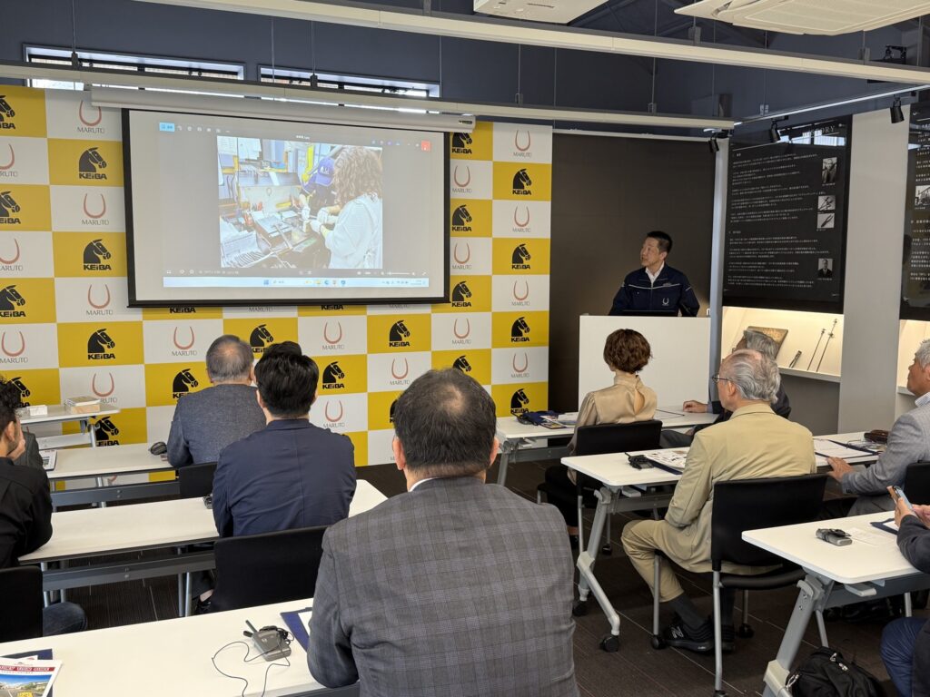 また、かつて同社の創業地近くに三条競馬場があり、ロゴマークに馬や馬蹄のデザインを取り入れていること、ニッパー型の爪切りを軸としたネイル事業のお話など、事業の細部まで丁寧にご説明頂きました。なぜ燕三条地域が工具やカトラリーの一大生産地になっているのか、歴史を紐解きながら解説いただき、何を見られても聞かれても絶対に真似できないという同社の技術力への自信を感じました。 |