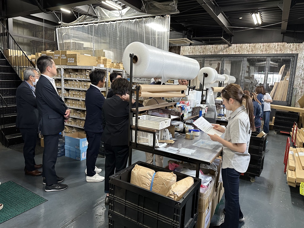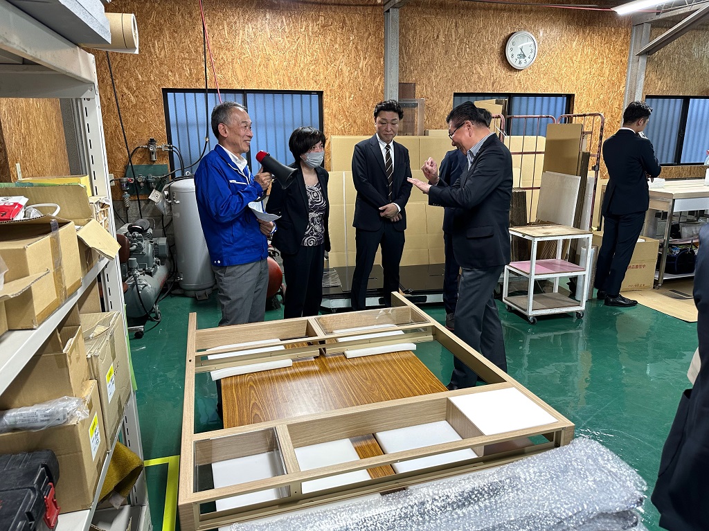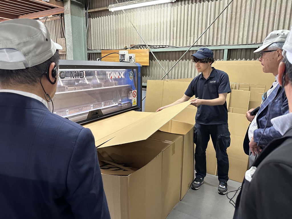 | 千代田様は、プラスチックやアクリル加工を得意とし、店舗什器ができるまでを拝見。アベキングループ様は、事業承継の一環としてM&Aを進めており、企業の垣根を越えて足りない技術を補う事で新たな製品製造に取り組んでおられるそうです。 | ![]() |