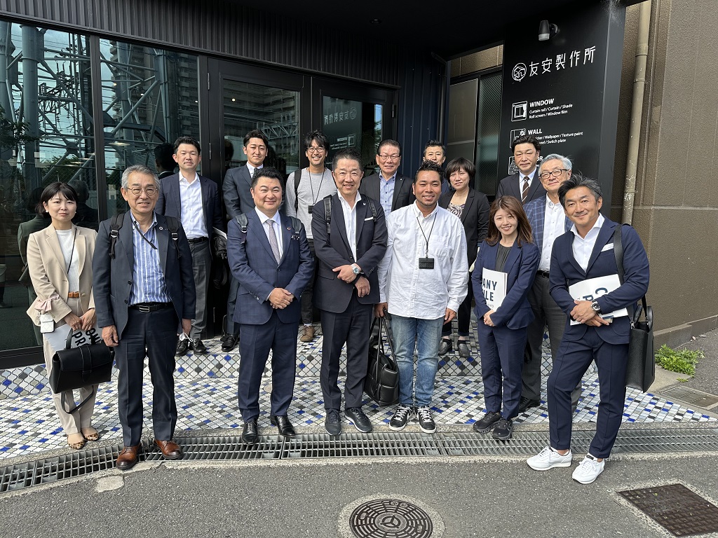 あべのハルカスを見上げながら現地集合組もここで合流し、総勢16名でオリジナルハンバーガーを頂きました。建物は、建築界の巨匠である村野藤吾氏が事務所として使用していた歴史的建造物。インテリアショップやDIYスペースを併設したカフェバーにリノベーションしたそうです。食事の後は、友安啓則社長に貸しスペースやショップをご案内頂きました。自社製品や輸入雑貨などが並ぶオシャレな空間とコンセプトに、初っ端から度肝を抜かれてしまいました。 |