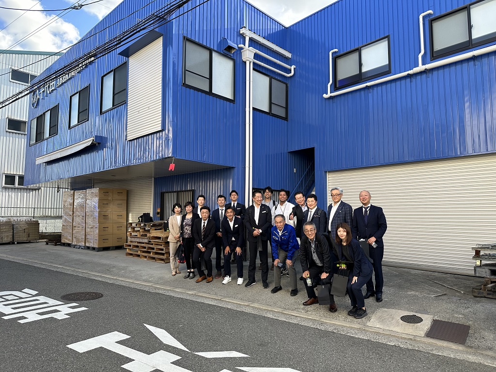 初日2ヶ所目の見学先は、堺市美原区の千代田様。 こちらは、産業人クラブ会員で燕市にあるアベキン様がM&Aで取得されたとの事。阿部隆樹社長は今回の視察会にご参加頂いており、事務局では3月辺りからずっと拝見したいとお願いしていたのでした。 |